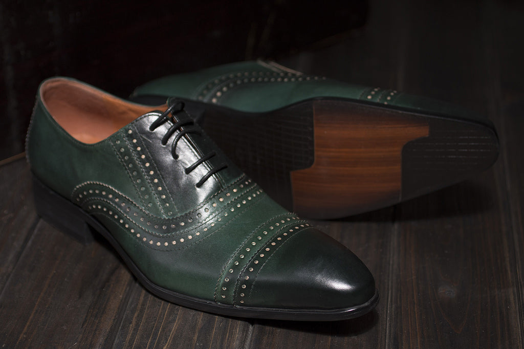 This dark green leather is perfect for a smart casual look.